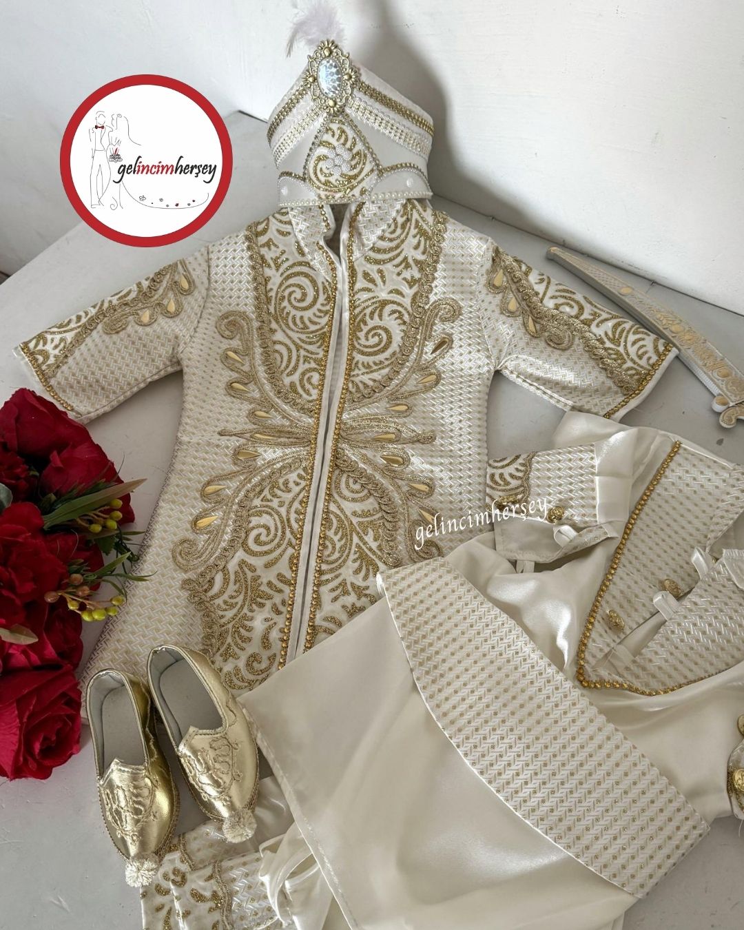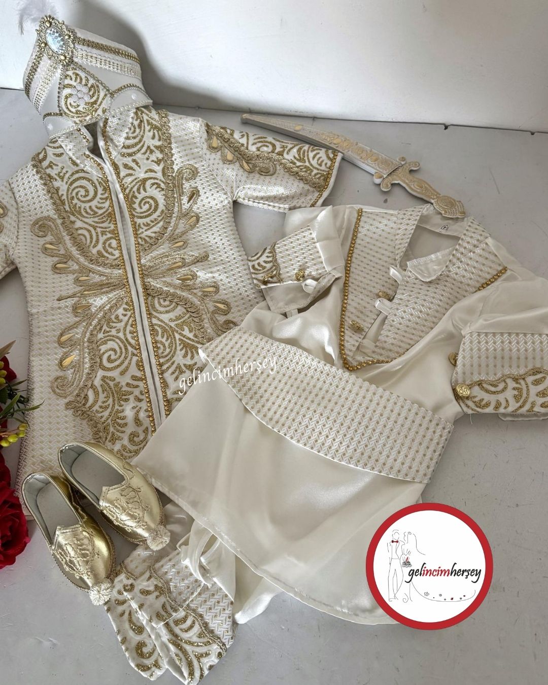 Gelincimherşey Osmanlı Şehzade Model 4 Yaş Altın Detaylı Sünnet Kıyafeti Tam Set