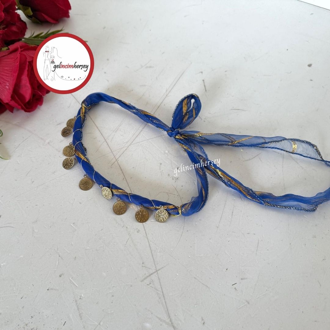 Geleneksel gösterilere, kına gecelerine ve özel dans performanslarına şıklık katan paralı alın kemeri, parlak metal para süslemeleriyle dikkat çeker. Alın bölgesine takılarak kullanılabilen bu kemer, özellikle oryantal danslarda, halk oyunlarında ve yöresel konseptlerde zarif bir tamamlayıcıdır.