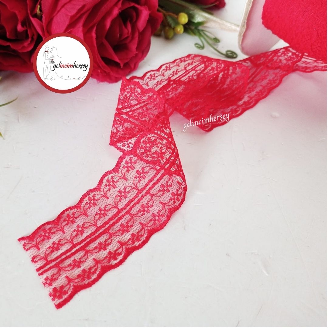 El işi projelerinize ve süslemelerinize zarif bir dokunuş katacak bordo renkli çift sıra polyester dantel! Yumuşak yapısı ve şık tasarımı ile özellikle davet ve organizasyon süslemelerinde, gelin aksesuarlarında ve dekoratif projelerde rahatlıkla kullanılabilir.