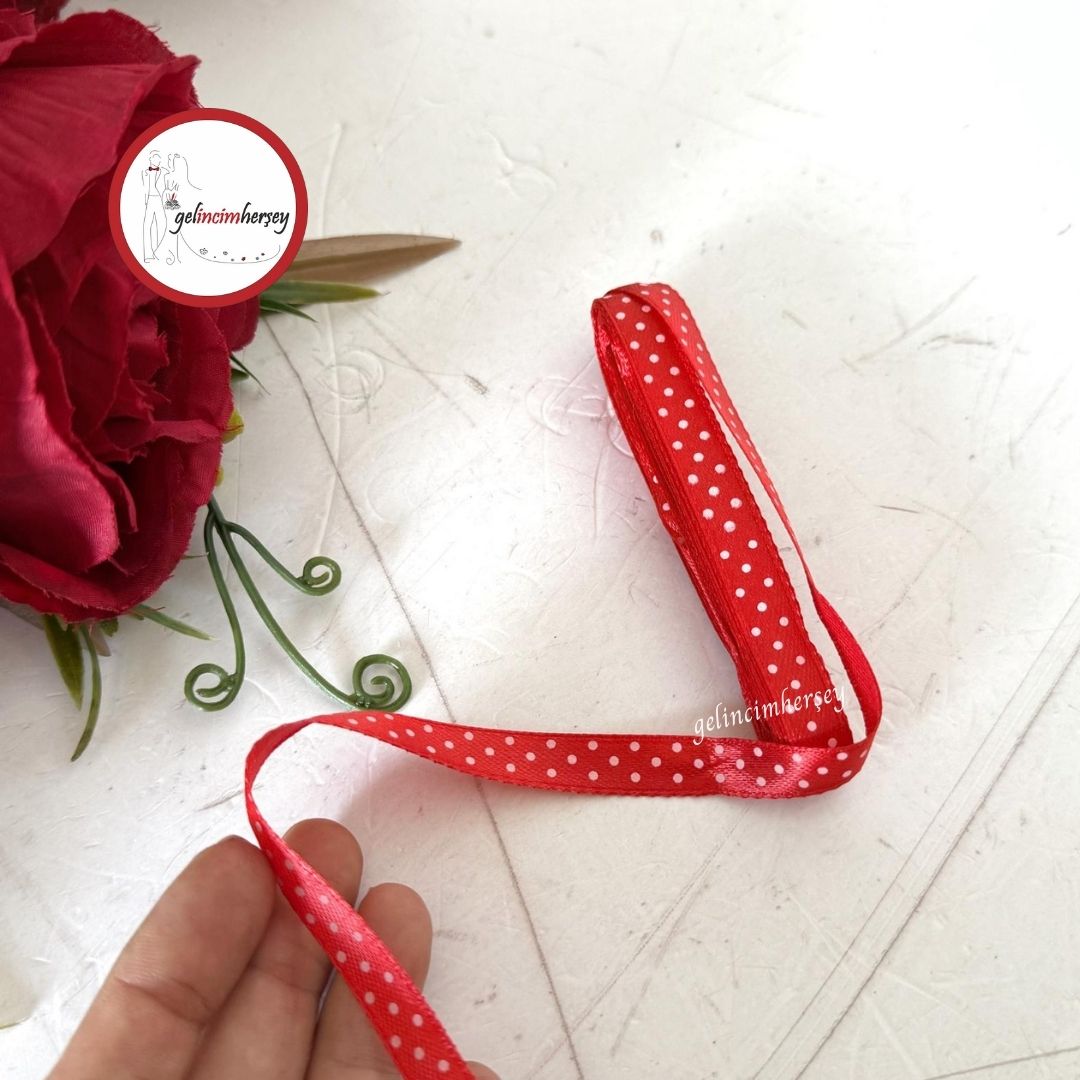 Süslemelerinize zarif ve nostaljik bir dokunuş katmak ister misiniz? Gelincimherşey’in puantiye desenli saten kurdelesi; kına bohçaları, hediyelikler, bebek şekerleri, davetiye süslemeleri ve daha birçok özel tasarımda kullanabileceğiniz, kaliteli ve göz alıcı bir yardımcıdır.