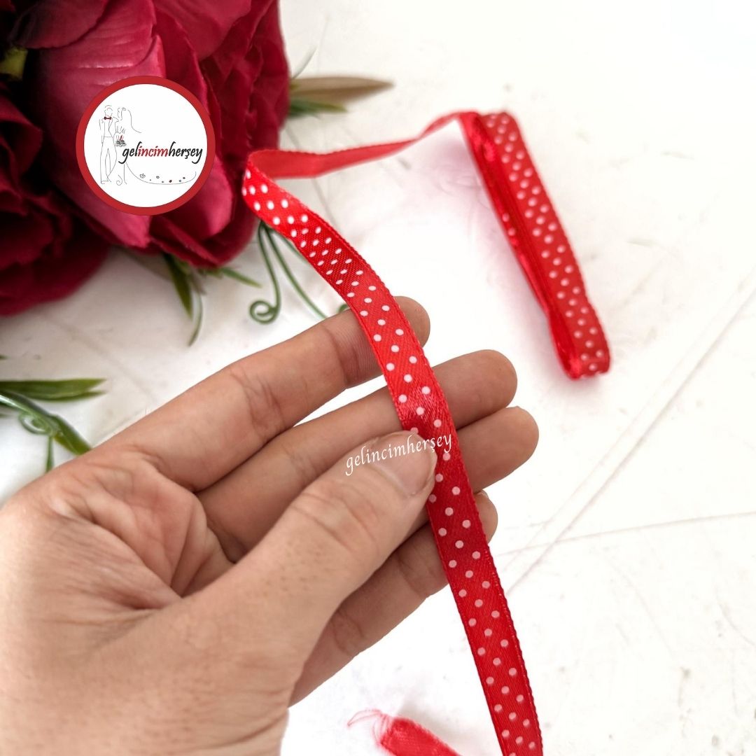 Gelincimherşey Puantiye Desenli Saten Kurdele – 1 cm x 10 mt