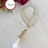 İnci görünümlü taneleri ve zarif püskül detayı sayesinde klasik ve zamansız bir duruş sunar. Hafif yapısı sayesinde günlük kullanım için de uygundur.
