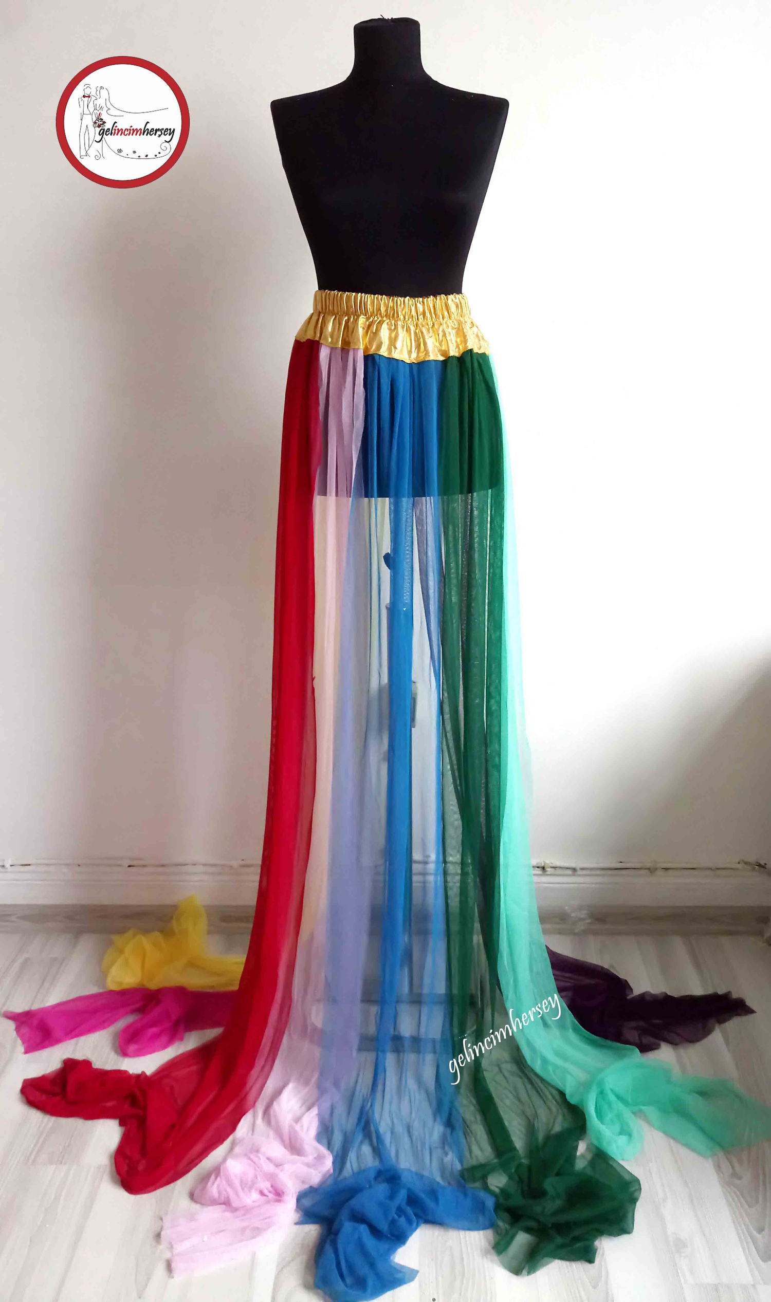 Gelincimherşey Renkli Kına Gecesi Rengarenk Eteği – 8 Renkli, Hayal Tül, Lastikli Bel