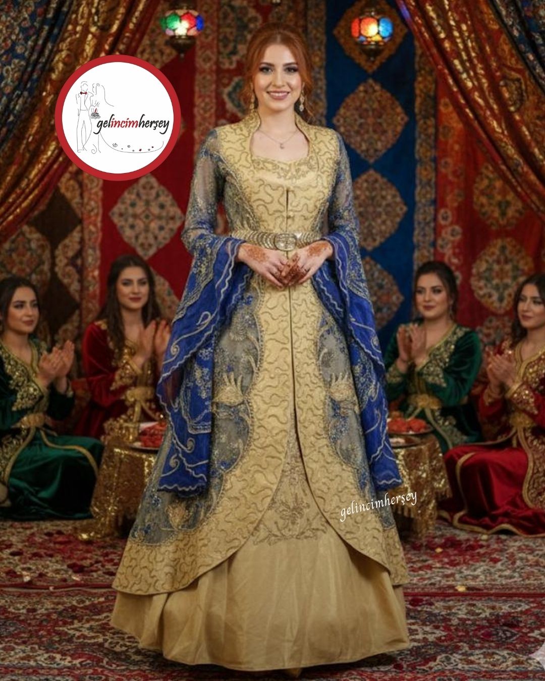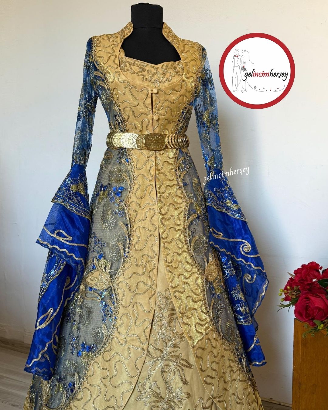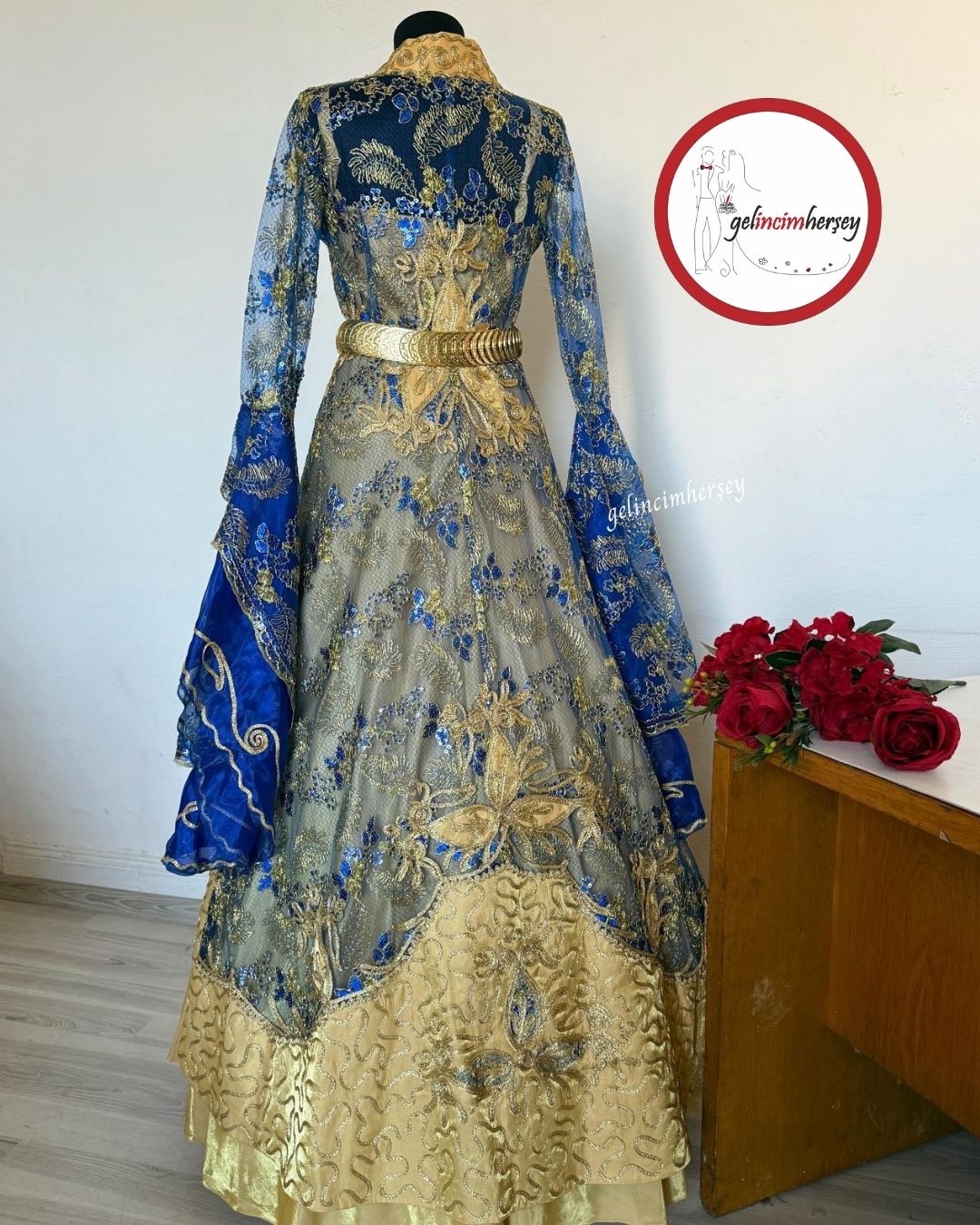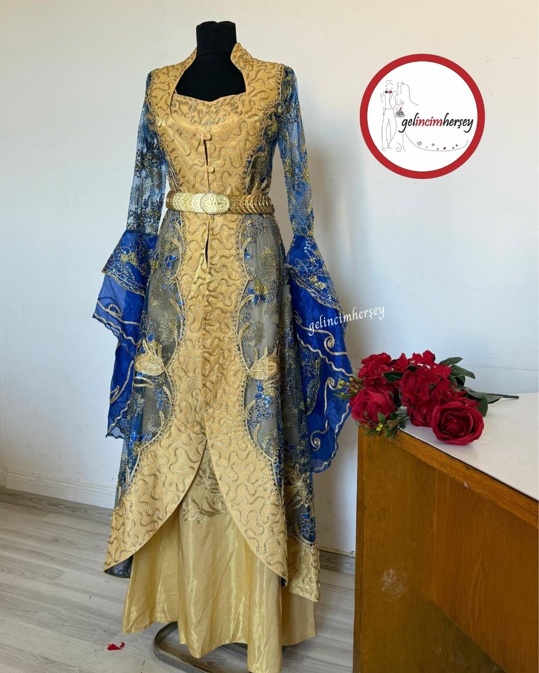 Kaftan Bindallı / Gelincimherşey Saks Mavi Altın İşlemeli Hürrem Model Kaftan Bindallı