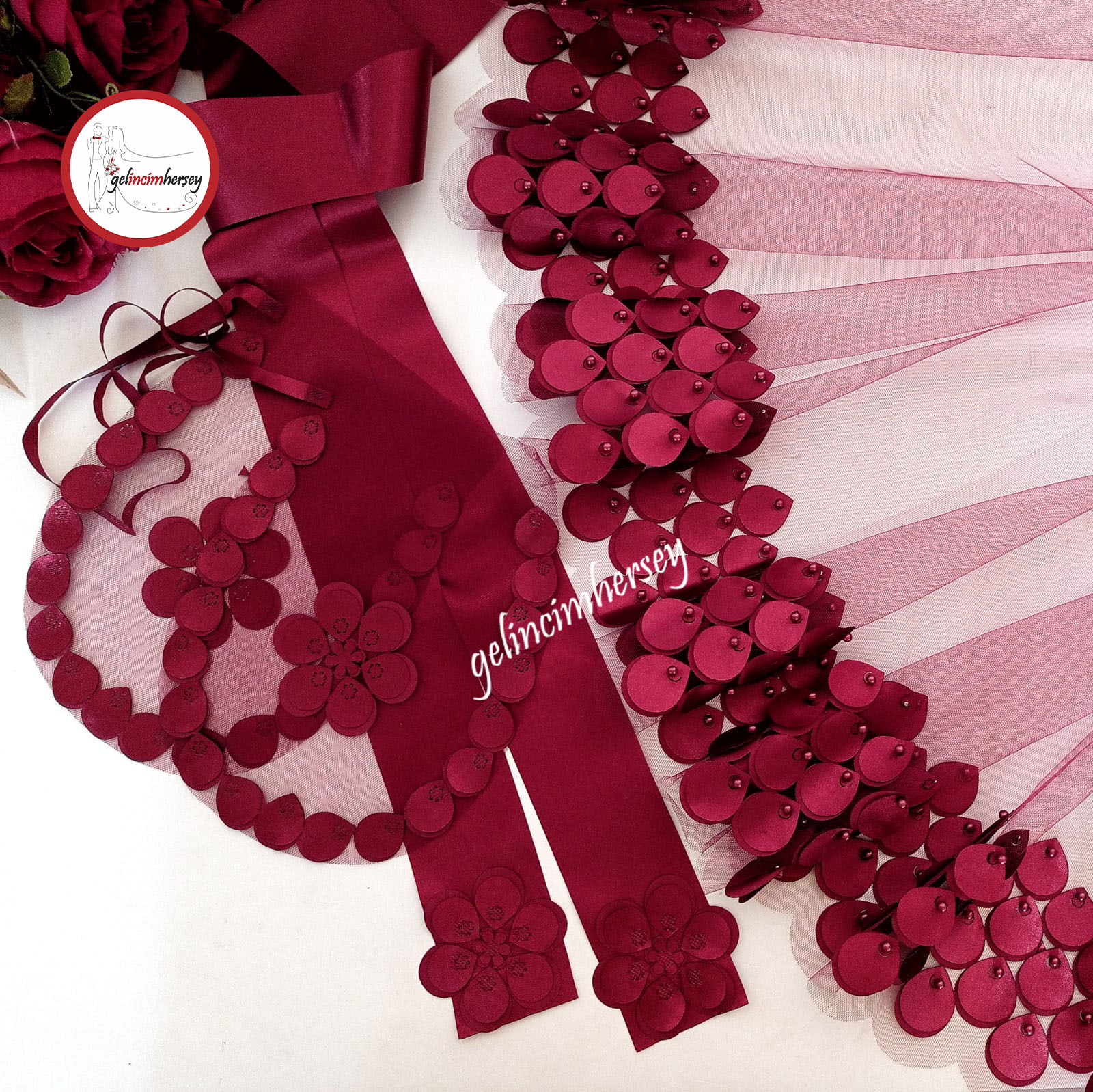 Gelincimherşey Saten Balık Sırtı İncili Kına Gecesi Gelin Duvağı