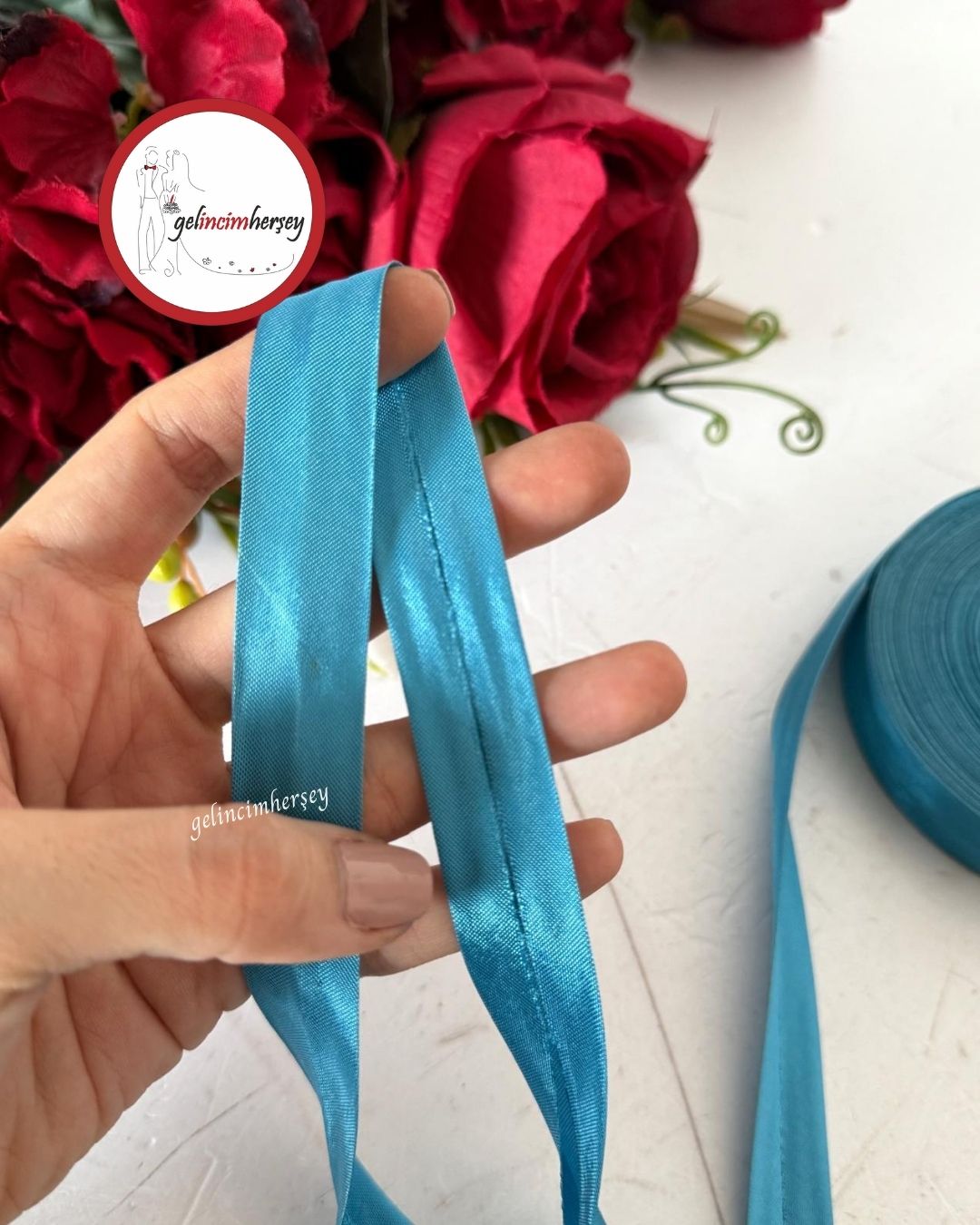5 mt parlak saten biye – Terzilik, tekstil ve aksesuar üretiminde kenar temizleme ve kaplama için ideal esnek saten şerit.
