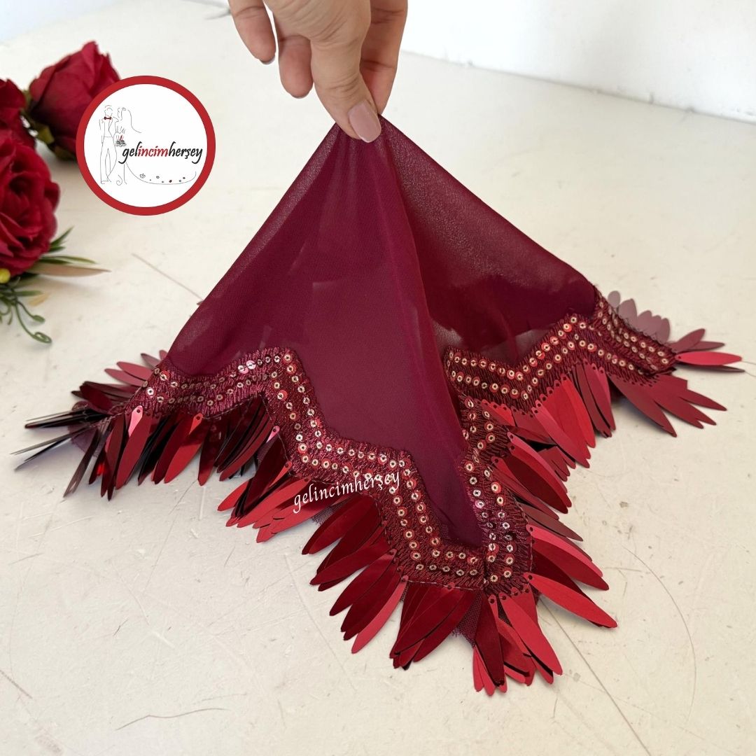 Gelincimherşey Şifon Kumaş Payet Süslemeli Gelin Halay Mendili