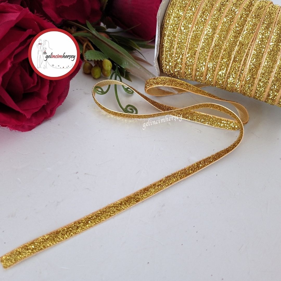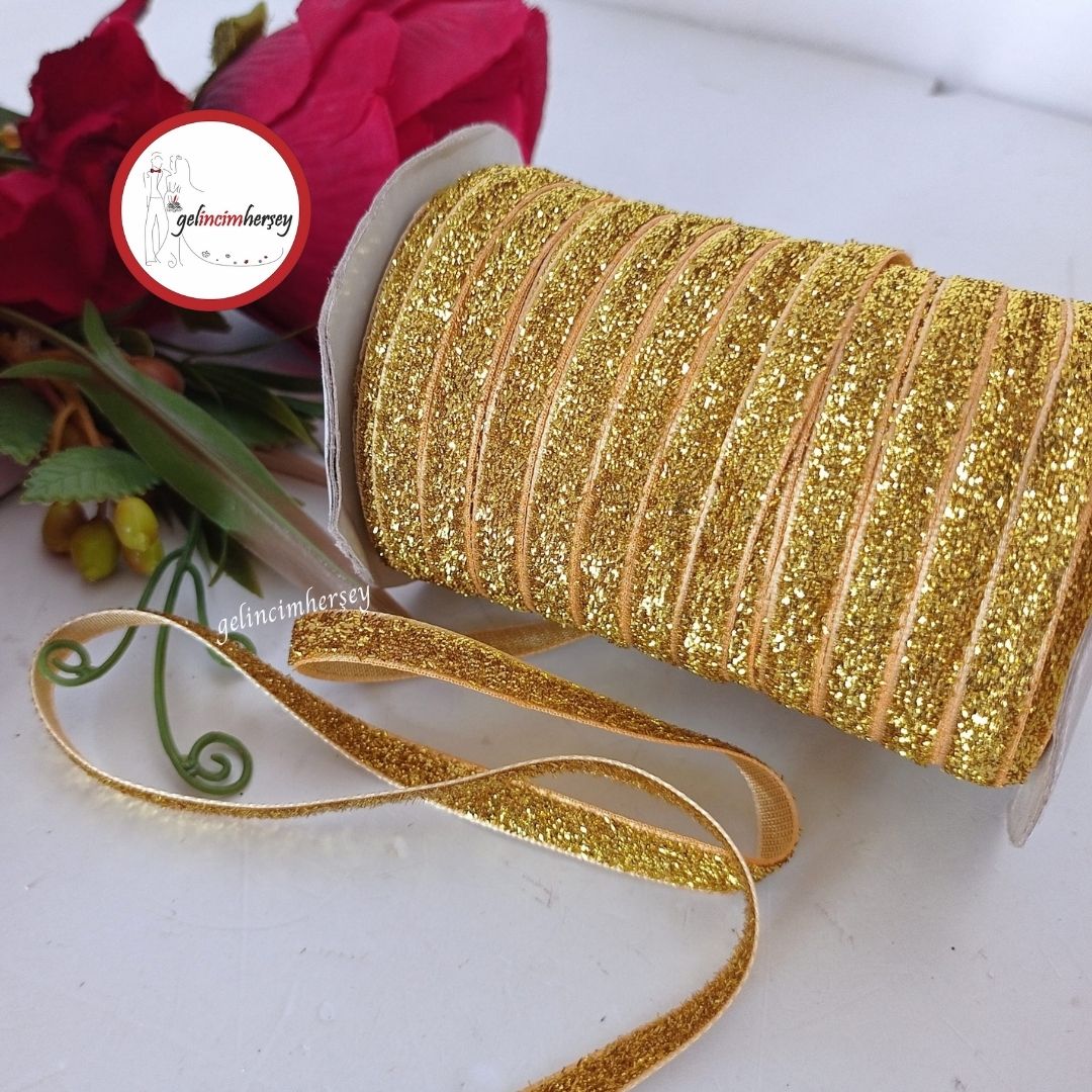 Simli Kadife Kurdele, zarif ve şık tasarımıyla her türlü dekorasyon ihtiyacınıza hitap eder. 6 mm genişliğinde ve 5 metre uzunluğunda olan bu kurdele, özellikle bohça süslemeleri, düğün hazırlıkları, ürün süslemeleri , Hediyelik süslemeleri ,çeyiz ve kına gecesi gibi özel günlerde mükemmel bir seçenek sunar.