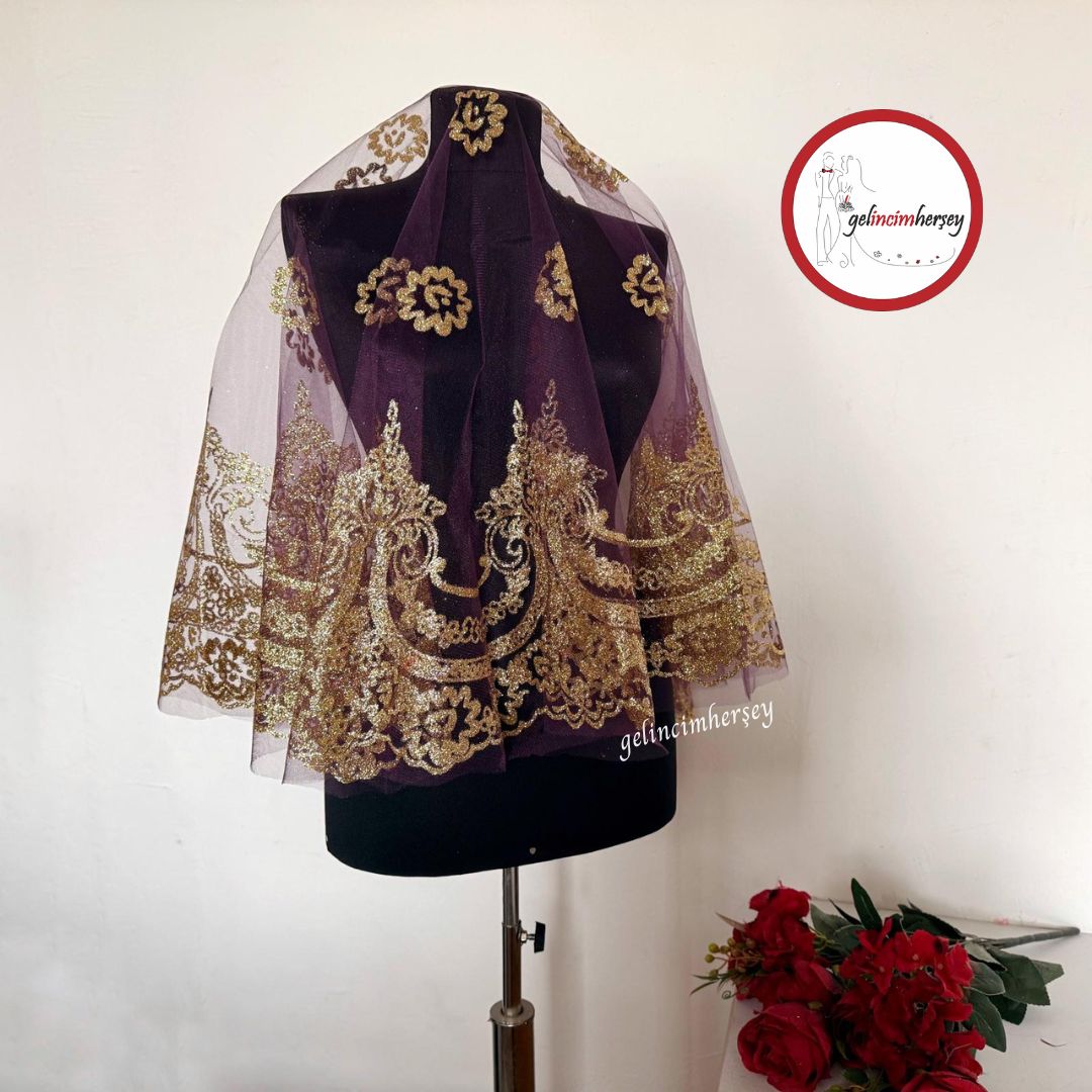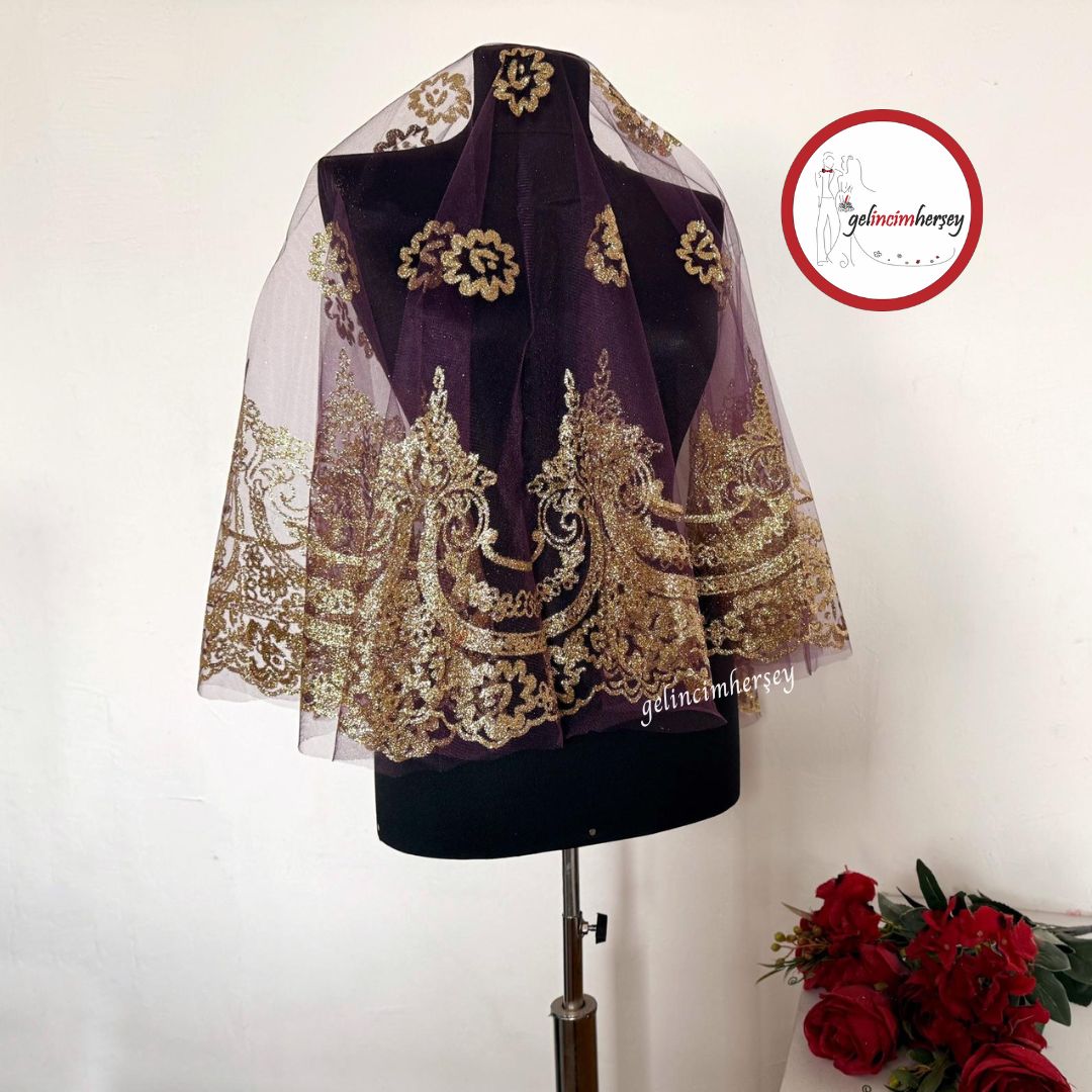 Ürün İçeriği: 1 Adet Altın Simli Yuvarlak Gelin Duvağı, 2 Adet El Gülü