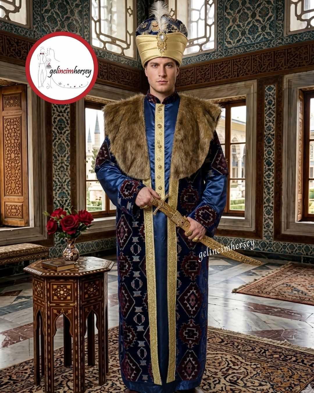 Gelincimherşey turkuaz yeşil Osmanlı Dönemi Sadrazam Lala kostümü, profesyonel kalite kumaş ve önden fermuarlı tasarımı ile tiyatro, cosplay ve özel etkinlikler için ideal bir aksesuardır.