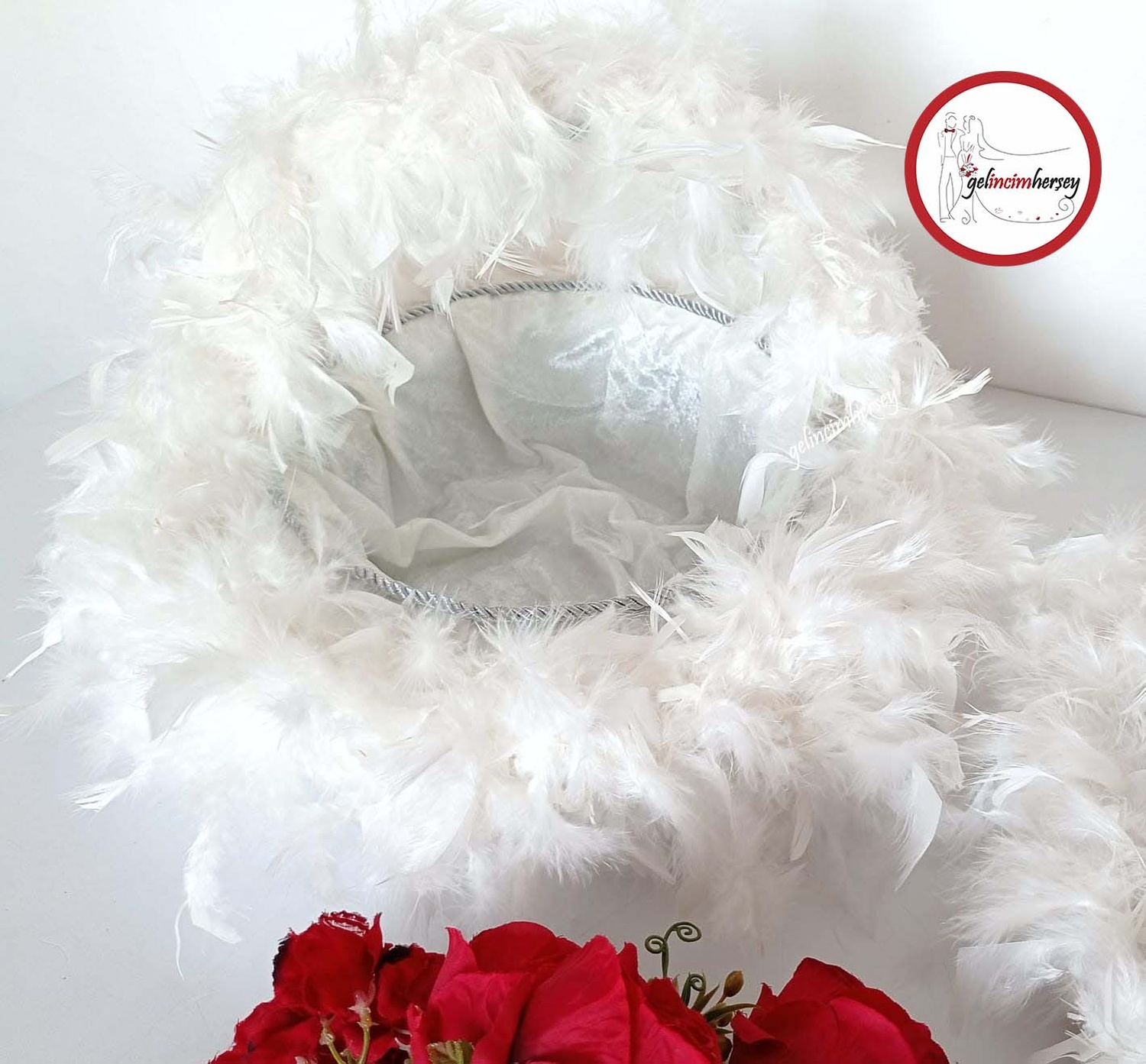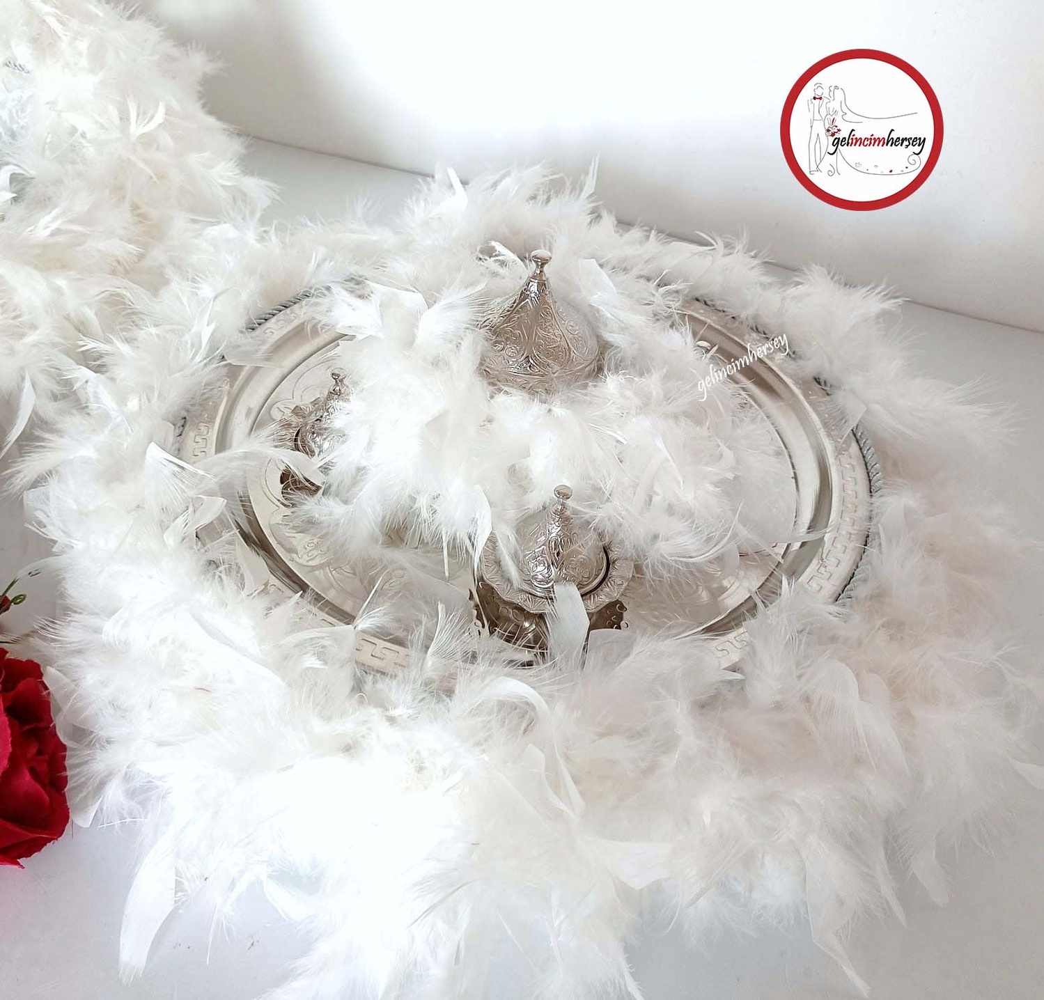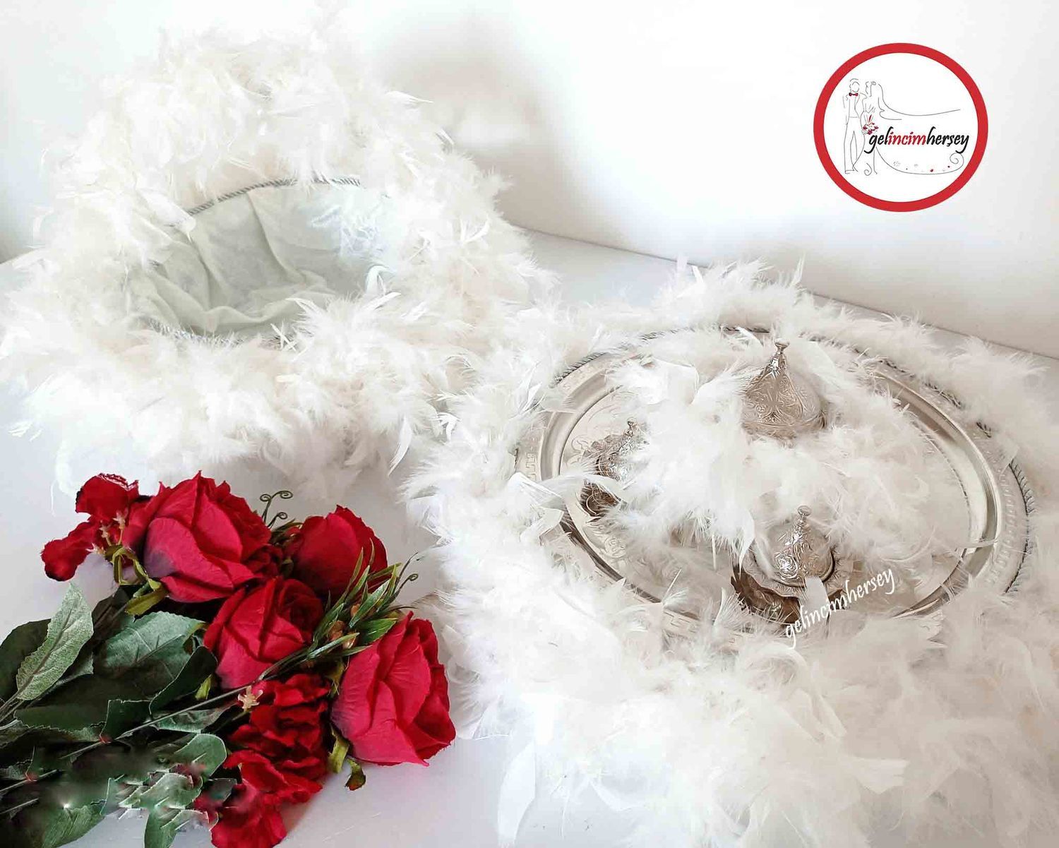 Gelincimherşey Tüylü Kadife Kaplama Metal Tepsili Kına Sepeti ve Kına Tepsisi