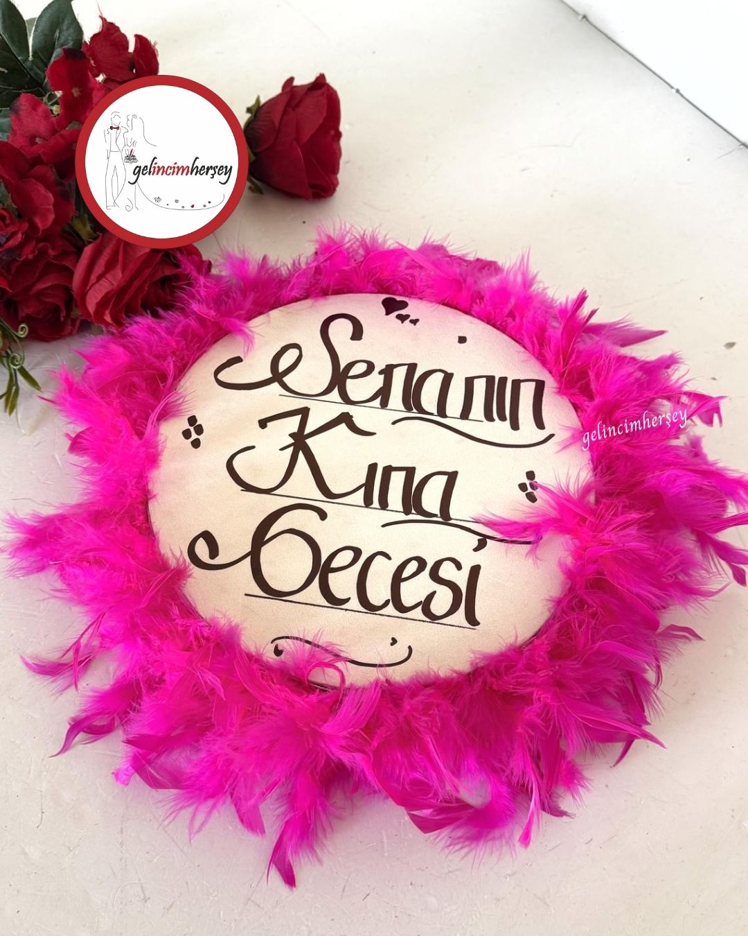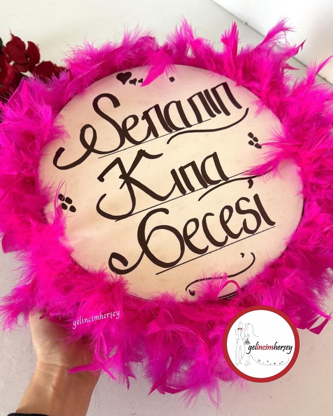 Kına gecelerinin olmazsa olmazı olan bu gösterişli tef, hem şık tasarımı hem de kişiye özel detaylarıyla öne çıkar. Üzerine istediğiniz isimlerin yazılabildiği bu tüylü gelin tefi, özel günlerinize anlam ve estetik katar. El yapımı detayları ve zarif süslemeleriyle gelin adayının elinde göz kamaştırır. Kaliteli orijinal deri yüzeyiyle hem görsel hem de işitsel bir şölen sunar.