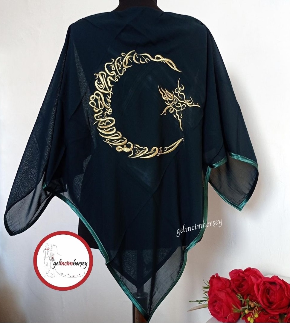 Kına gecelerinin vazgeçilmezlerinden biri olan damat duvağı, bu kez anlam yüklü ay-yıldız nakışı ve göz alıcı yeşil rengiyle karşınızda! Hafif ve dökümlü şifon kumaşı sayesinde rahat kullanım sunan bu duvak, biyeli kenar yapısı ile daha düzenli ve estetik bir görünüm sağlar.