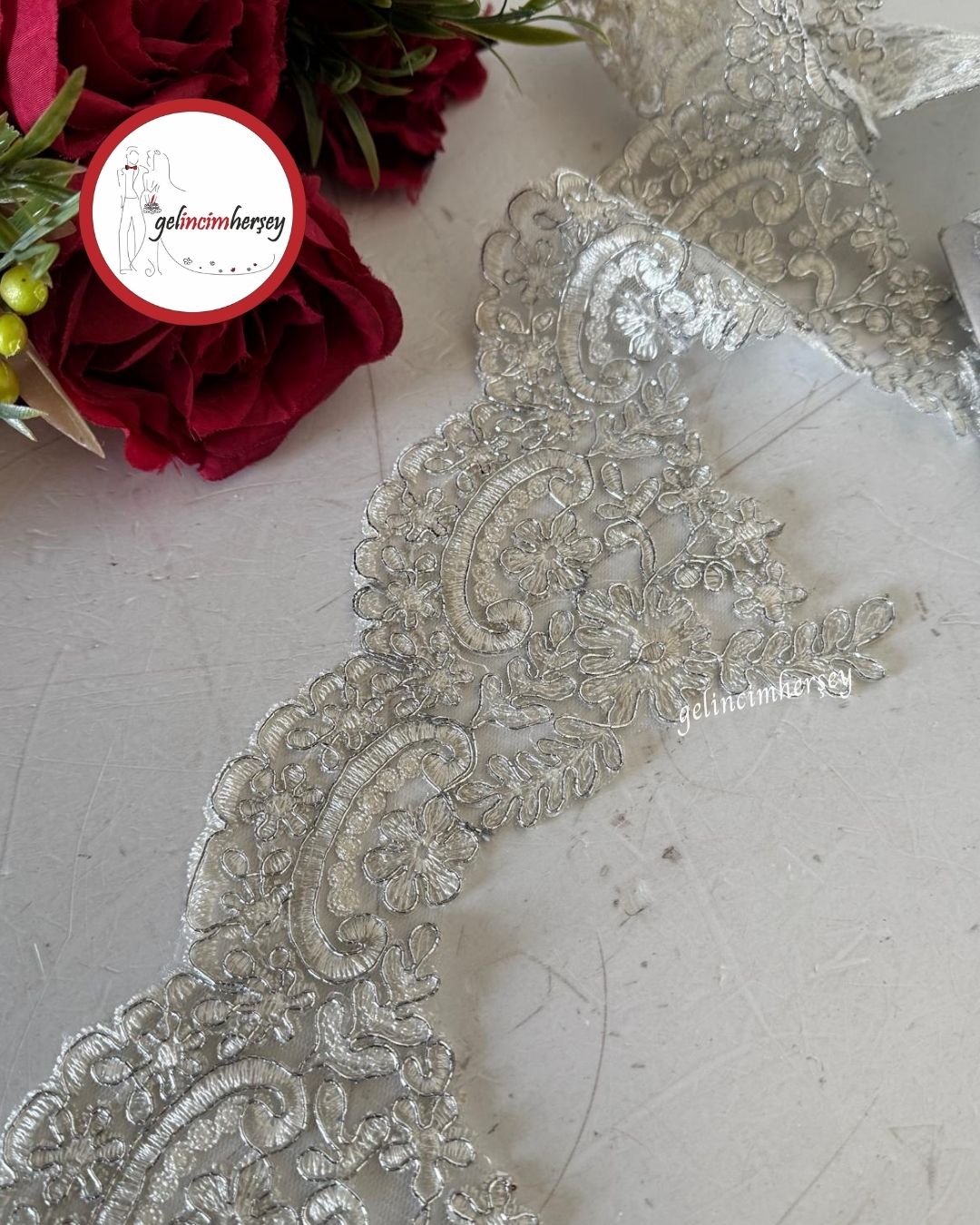 Gelincimherşey yıldız motifli dantel tül güpür, 7 cm x 4 metre ölçüsü ile dekoratif süsleme ve kenar kapama için şık ve ışıltılı bir aksesuardır.